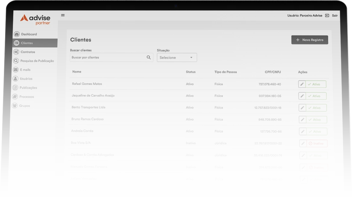 O Advise Partner é a plataforma exclusiva para empresas parceiras que desejam revender a tecnologia Advise, oferecendo a seus clientes soluções completas em monitoramento processual, publicações e gestão jurídica.