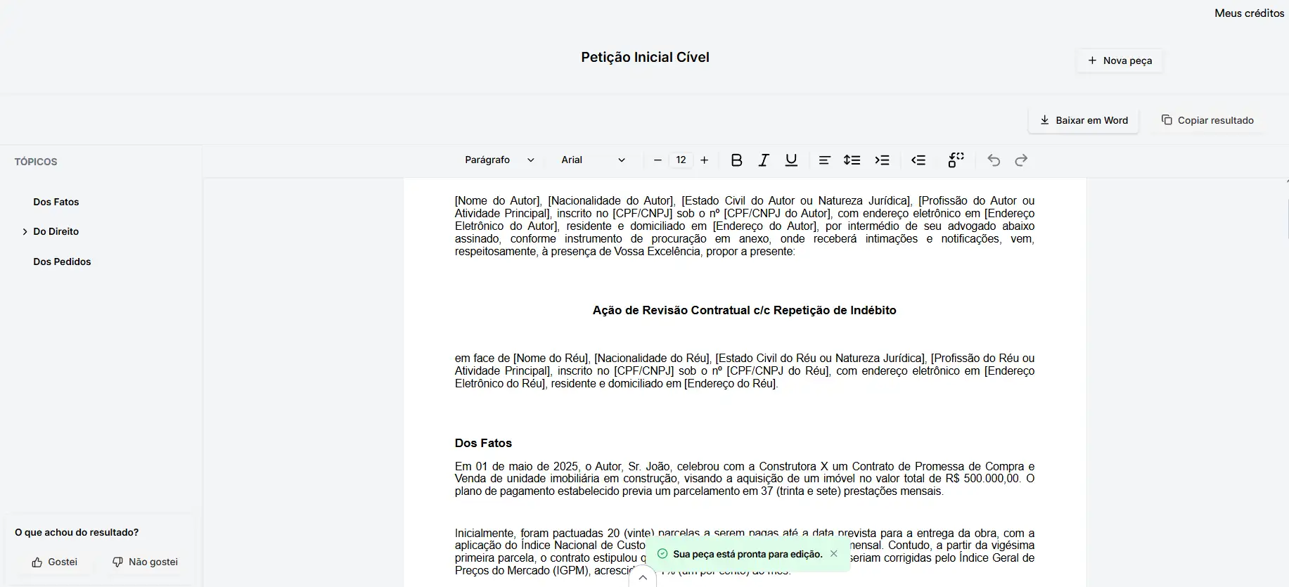 O resultado é um contrato claro, coerente e pronto para revisão, garantindo agilidade.